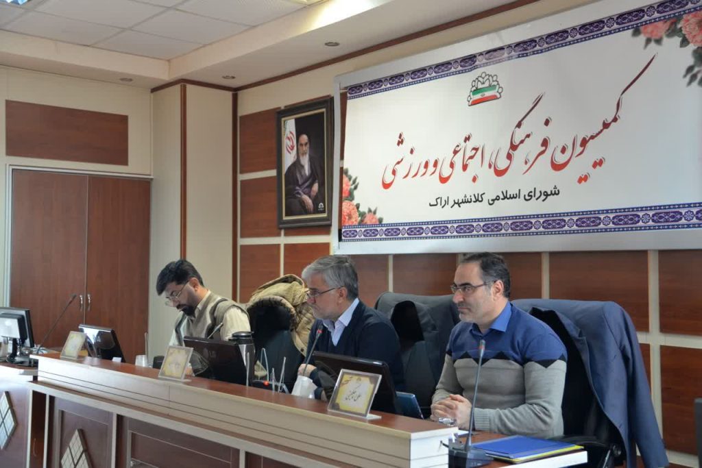 نشست کمیسیون فرهنگی،اجتماعی و ورزشی شورای اسلامی کلانشهر اراک به ریاست سیدوحید میرنظامی با حضور اعضاء شورای شهر،مشاور شهردار،مدیر کل مبارزه با قاچاق کالا و ارز استانداری مرکزی،مدیران و کارشناسان شهرداری با محوریت بررسی موضوعات: